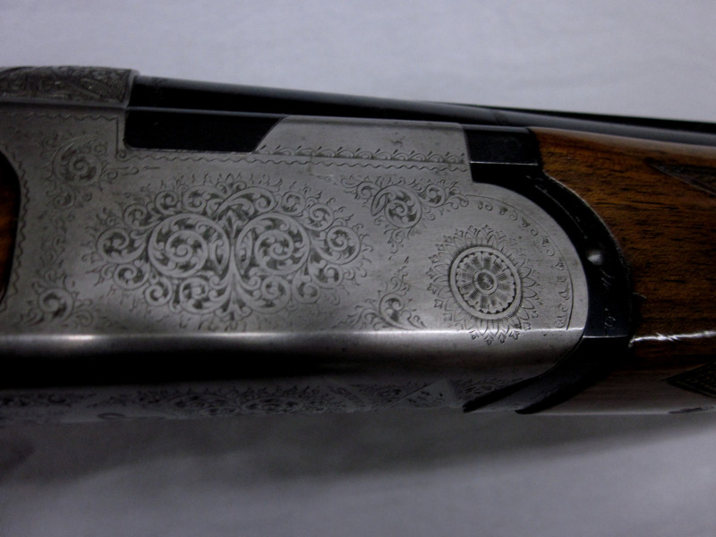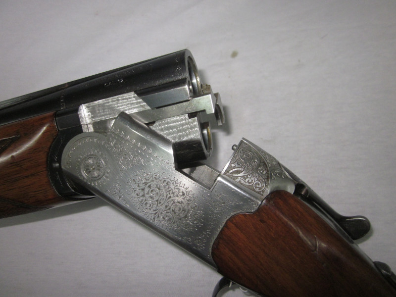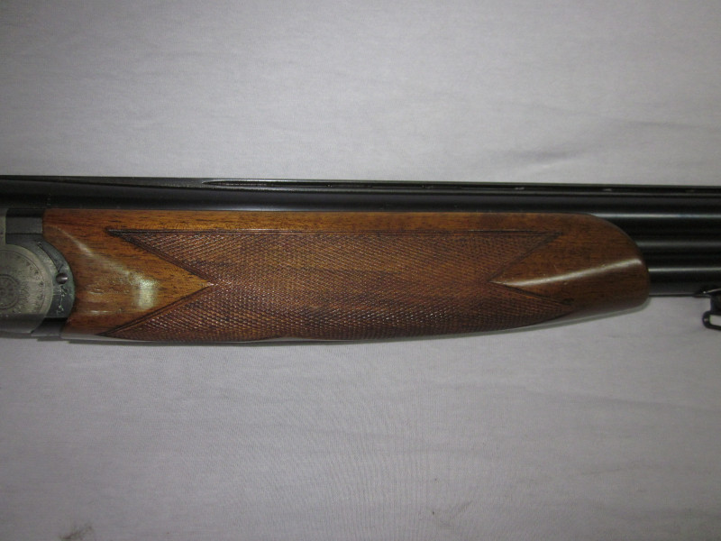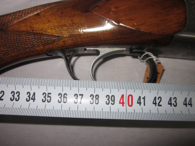 Die Bockflinte ist gepflegt und hat wenige normale jagdliche Gebrauchtspuren. Die Läufe sind blank.