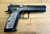 CZ TS 2 SILVER Grundausführung der Sportpistole für die Standard Division, optimiert nach IPSC-Regelwerk. Aber auch für das reguläre Zielscheibenschießen, geeignet für Anfänger und fortgeschrittene Wettkämpfer. Die Pistole hat silbern eloxierte, flache Duralgriffschalen, ein festes Metallvisier und flache Bedienelemente sowie eine beidseitige manuelle Sicherung.