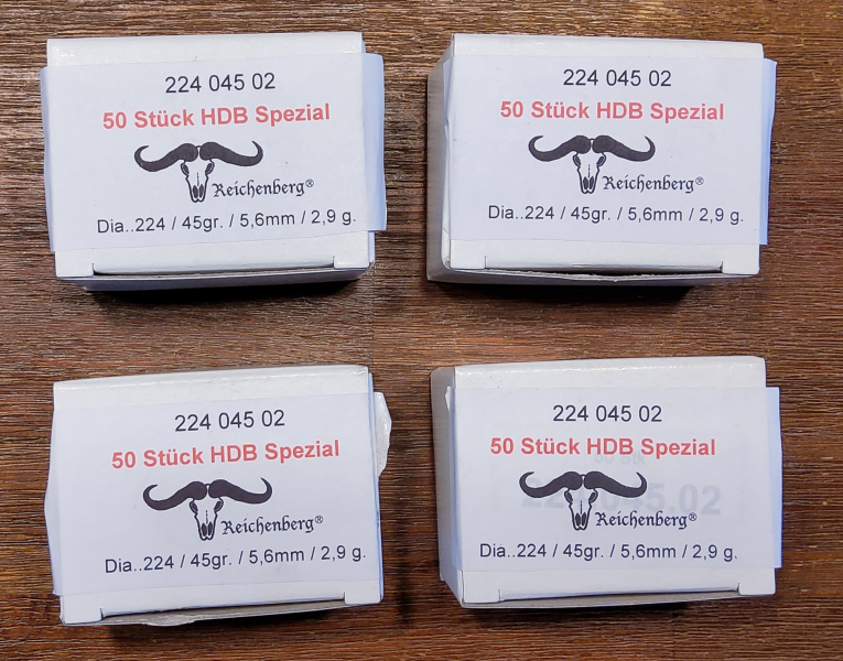 Zum Verkauf kommen 188 Geschosse Typ Reichenberg HDB Spezial Kaliber .22 mit 45 Grain Gewicht.