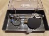 Ich biete eine Schießbrille von Knobloch an, die mir von einem Vereinsmitglied zum Verkauf übergeben wurde. Sie ist wenig benutzt worden und seit einiger Zeit gar nicht mehr. Es ist alles individuell verstellbar. Im Lieferumfang sind das Gestell, der Glashalter, verstellbare Irisblende, schwarze Blende und die Transportbox.