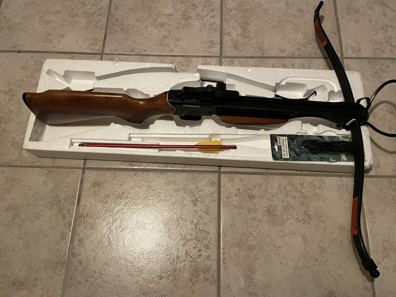 Ich verkaufe eine neuwertige Armbrust mit Echtholzschaft inkl. 2 Sehnen (1xErsatz) und einem Bolzen in der Originalverpackung.