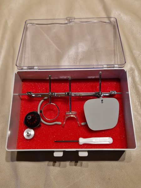 Ich biete eine Schießbrille von Knobloch an, die mir von einem Vereinsmitglied zum Verkauf übergeben wurde. Sie ist wenig benutzt worden und seit einiger Zeit gar nicht mehr. Es ist alles individuell verstellbar. Im Lieferumfang sind das Gestell, der Glashalter mit Schutz, graue Blende, kleiner Schlitz-Schraubendreher, kleiner Inbusschlüssel mit Rändelschraube und die Transportbox.