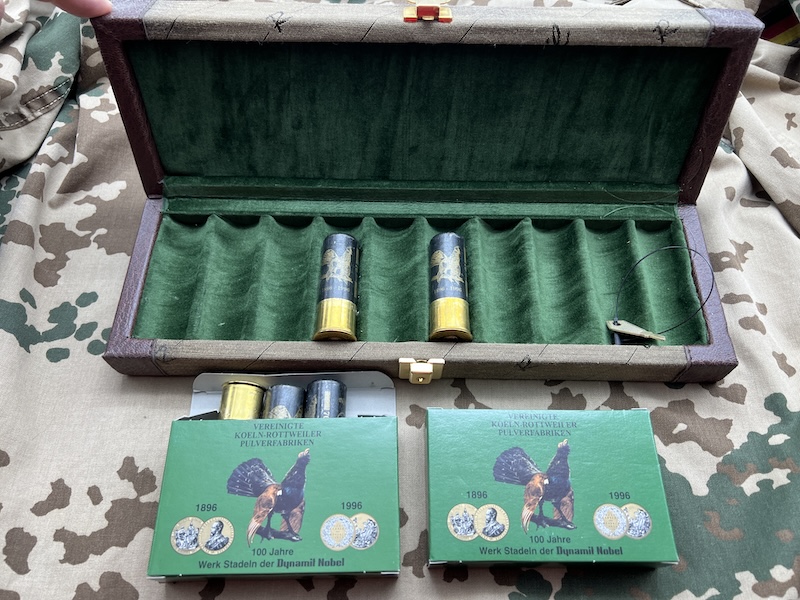 Als Basis diente die beliebte Rottweil Waidmannsheil, Pappe, in 3.00 mm. Hierfür wurden extra Schachteln und die Beschriftung der Patronen neu gestaltet. Auslieferung erfolgte in 5er Einzelschachteln, als nächst mögliche Umverpackung gab es spezielle Holzboxen.