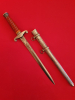 Hallo, versteigert wird ein Original Heeresoffiziersdolch in versilberte Ausführung, Entnazifiziert, Hersteller: WMW Solingen - Weyersberg Max Waffenfabrik Solingen, Knauf und Zwinge schöner Zustand, Griff intakt ohne Risse, Parier entnazifiziert, Rückseite Trägerinitialen HK. Klinge Rückseitig: Herstellerlogo, Scheide intakt ohne Dellen, Mundblech mit 2 Schrauben befestigt, Dolch geht sauber in Scheide.