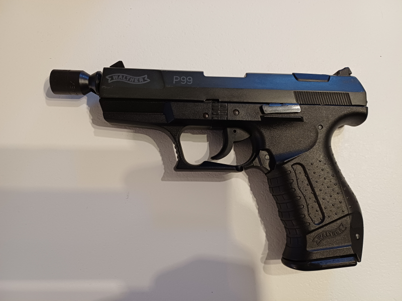 Biete hier eine Walther P99 Kaliber 9mm P.A.K. an. Die Waffe kommt im Original Koffer plus auf-/ abschraubbaren Abschussbecher und Anleitung. Die Pistole ist inkl. Magazin und voll funktionsfähig. Sie befindet sich im schönem Zustand mit leichten Gebrauchsapuren, und wurde nur wenig geschossen.