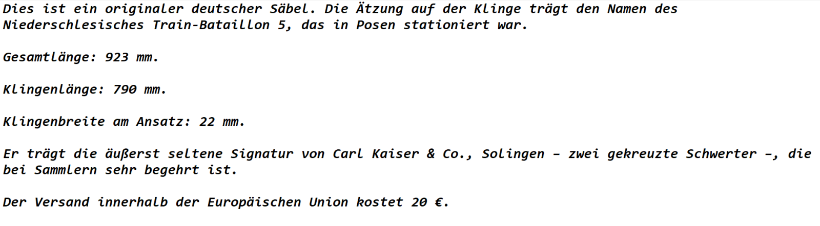 Lesen Sie genau die Beschreibung des angebotenen Artikels.