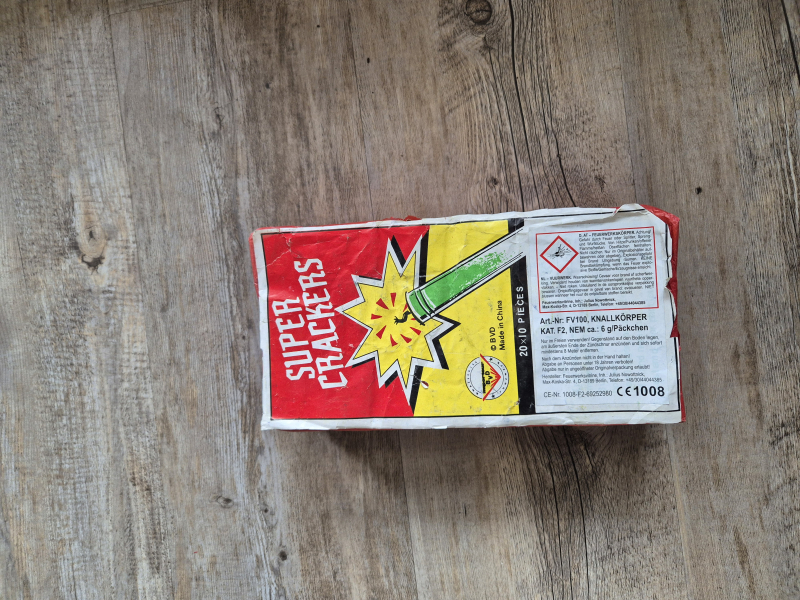 Ich verkaufe einen kompletten Schinken BVD Super Crackers. Der Artikel ist zwar abgelaufen vom Verfallsdatum ,aber die kleinen Dinger funktionieren noch gut.Das CE Kennzeichen ist die Nr 1008-F2-69252980. Ich verkaufe hier eine richtig schöne Rarität für den Sammler.