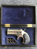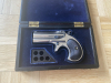 Sie bieten hier auf einen seltenen Remington Deringer Kaliber .41 Randfeuer. Der bildhübsche Deringer befindet sich in einem ausgezeichneten Zustand, alle Oberflächen sind top. Die Vernickelung ist klasse, die Griffschalen wie neu, die Läufe spiegelblank. Natürlich intaktes Gelenk, Ausstoßer funktioniert, kurzum: Museumsqualität! Die zeitgenössische Holzschatulle befindet sich in einem sehr guten Zustand. Die Pistole hat keine Fremdstempel, deshalb nur an Sammler, Händler oder Export.
