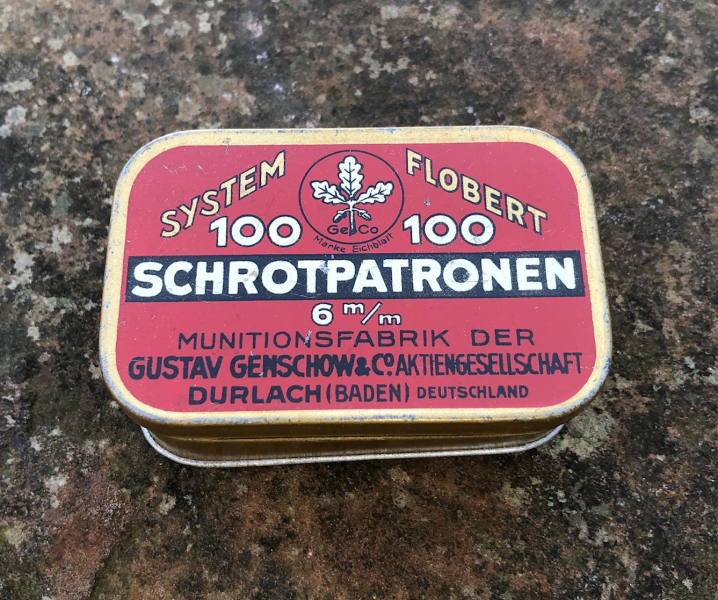 Blechdose mit Klappdeckel für 100 Flobert-Schrot-Patronen 6mm