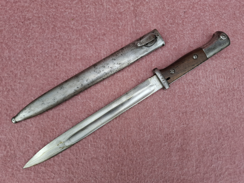 Das Seitengewehr 84/98 (2. Version) stammt aus einem Sammlernachlass. Hersteller ist die die Firma Gebrüder Heller Marienthal. Das Kammerstück weist den Abnahmestempel „W mit Krone 17“ für Preußen König Wilhelm II 1917 und weitere individuelle Abnahmestempel des Prüfers (gotisches C mit Krone) auf. Zudem ist es mit „1920“ und der Nummer 245 gestempelt, was darauf hinweist, dass die Waffe weiter bei der Reichswehr verwendet wurde. Das Teil weist typische Lagerungs- und Nutzungsspuren auf. Es ist ein schöner und repräsentativer Originalbeleg deutscher und preußischer Militärgeschichte mit eigener, über 100 Jahre alter Geschichte. Ansonsten siehe als Angebotsbestandteil die Fotos. Beachtet auch meine anderen Auktionen!!!