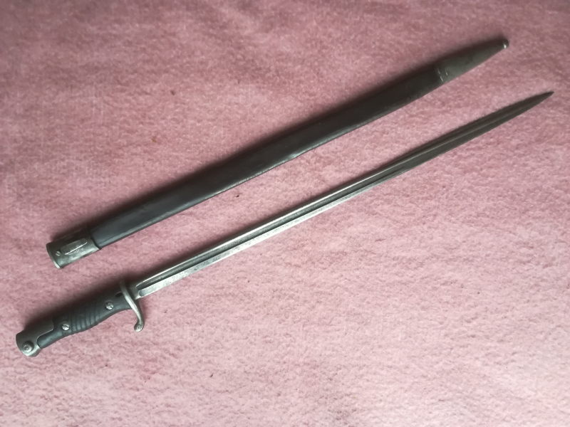 Das Seitengewehr 98 alter Art stammt aus einem Sammlernachlass und ist 68cm lang. Hersteller ist die die Firma V.C.S. Suhl. Das Kammerstück weist den Abnahmestempel „W mit Krone 03“ für Preußen König Wilhelm II 1903 und weitere individuelle Abnahmestempel des Prüfers (gotisches E mit Krone) auf. Zudem ist auf der Parierstange der Truppenstempel 29 R.3.225. für Infanterie-Regiment „von Horn“ (3. Rheinisches) Nr. 29, 3. Kompanie, Waffe 225 gestempelt. Das Regiment war in Trier stationiert. Auf der Oberseite ist zudem der Truppenstempel 2. R 81. eingeschlagen. Der Drücker ist gängig und die Lederscheide ist geschlossen Das Teil weist typische Lagerungs- und Nutzungsspuren auf. Es ist ein schöner und repräsentativer Originalbeleg deutscher und preußischer Militärgeschichte mit eigener, über 120 Jahre alter Geschichte. Ansonsten siehe als Angebotsbestandteil die Fotos. Beachtet auch meine anderen Auktionen!!!