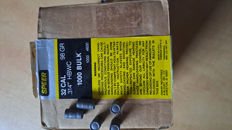 Wadcutter .32 HBWC 98 GR. Gewogen 3900 g = ca. 600 Stück.