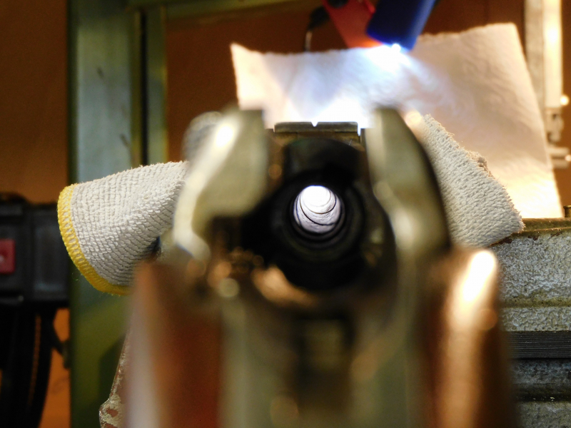 Gewehr 71/84....Hergestellt in Danzig 1887.... Nummerngleich bis auf Schloss....Alle Stempel, soweit ersichtlich, vorhanden....Einziger Mangel am Schaft: kleiner Einriss ( Pfeil ).....Metallteile in zeitgemäßem Zustand, voll funktionsfähig....Was wichtig ist: Das Magazinrohr ist innen blank, außen oxidfleckig ( viele sind hier durchgerostet ).....Der Lauf hat scharfe Züge und Felder, leider durch mangelnde Pflege Rostnärbchen....Die Schussleistung auf 50m ist für meine Verhältnisse gut....Wünsche Ihnen viel Erfolg beim Bieten....Meines Erachtens ein Gewehr für den Schießstand...Allerdings nix für den Beginner beim Wiederladen....Privatauktion unter Ausschluss von Garantie, Haftung und Rücknahme.