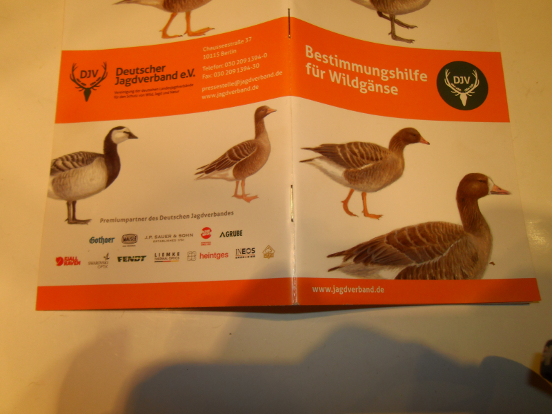 Bestimmungshilfe für Wildgänse, Impressum Deutscher Jagdverband e.V., 2023, Berlin. Heft DIN A 5 15 x 10,5 cm, 58 Seiten