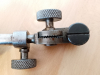 Speziele Handstütze für eine Scheibenbüchse aus eigener Sammlung (auch geeignet für historische oder Match Armbrüste wie Winzeler, Schallberger etc. ). Die Handstütze ist durchdacht ausgearbeitet und dreidimensional verstellbar, auch in der Höhe! Das Hartholz der Kugel ist schön gemasert und verfügt über einen Auflagezapfen. Die Verstellung erfolgt über die drei schön gerändelten Schrauben, eine Verdrehung ist Dank der gefrästen Zahnung nicht möglich. Die Montage erfolgt über die Standartschiene. Die Anfertigung dieser besonderen und historischen Handstütze erfolgte durch einen schweizer Büchsenmacher Meister. Zustand siehe auch Bilder. Bilder sind Teil der Beschreibung. Privatverkauf, keine Gewährleistung keine Rückgabe. mit Ihrem Gebot erklären sie sich damit einverstanden. Verkauf ins Ausland nur nach vorheriger Absprache. Ein "Muschelschaft" für einen Scheibenstutzer ist auch noch vorhanden, falls Interesse melden....