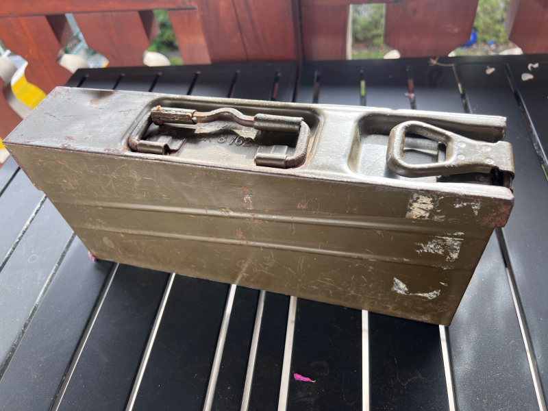Bundeswehr Munitionskiste 12-121-1508 BK 8 / 62 Werkzeugbox. Maße ca. 360x78x168 (LxHxB)