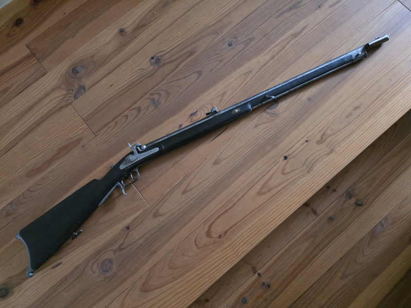 Vorderlader Gewehr zu verkaufen. Ich bin mir nicht ganz sicher aber es könnte sich hierbei um eines der ersten Schweizer Feldstutzer 1851 handeln. Lauf, Schlossplatte und Abzugsbügel sind mit der niedrigen Nummer 460 gestempelt. Der Lauf im Cal. 10,4 mm ist außen stellenweise rostnarbig, aber rostfrei. Stecher und Abzug funktionieren. Der Sockel für den Diopter ist vorhanden ( vierkant) der Diopter selber ist nicht dabei. Die Visierung besteht aus verstellbarer Kimme und Korn. Gesamtlänge 125 cm. Das Gewehr kann nicht zerlegt versendet werden. Die Kosten für den Versand trägt der Käufer. Eine Übergabe in Giessen ist möglich. Wie mir gesagt wurde ist ein aktueller Beschuß nicht nötig da das Gewehr vor 1890 gebaut wurde. Altersnachweis erforderlich. Das Gewehr könnte die Vorlage für den Vollmer Stutzen gewesen sein. So lange noch kein Gebot abgegeben wurde können Sie einen Preisvorschlag machen. Viel Erfolg beim Bieten.