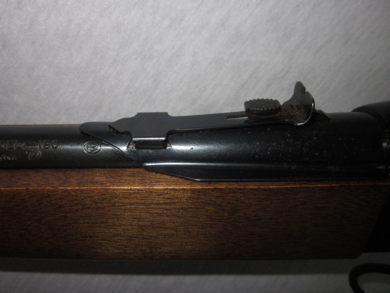höhenverstellbares Visier - Korn, Druckknopfsicherung im vorderen Bereich des Abzugsbügels