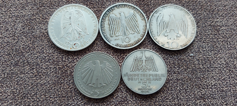 Silber ,2s-5 DM ,3s-10 DM .Wegen fehlende Fachkenntnisse keine weitere Angabe machen möchte. Privatverkauf ohne Gewährleistung oder Rücknahme!!! Alle Angaben nach bestem Wissen und Gewissen. Versand in Deutschland -6,19 eur DHL Paket. Versand andere Lender per Nachfrage ,EU Lender 14,49 eur.(DHL) Paket