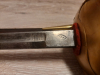 Lederscheide Nat geschlossen Messingbeschlag oberhalb mit Nummer gestempelt. Klingen Ätzung teilweise verputzt.