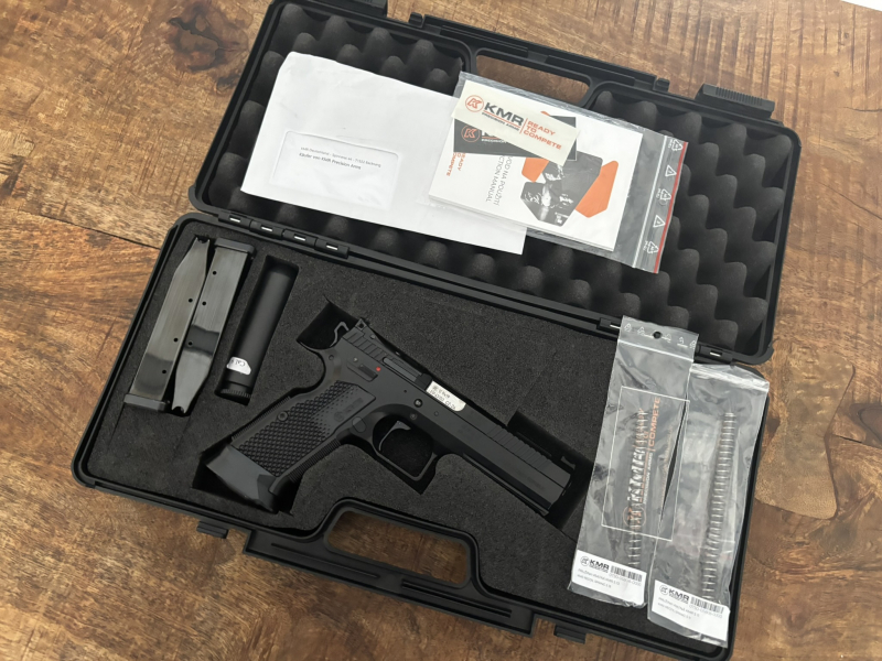 Die Waffe wurde für einen Vergleichstest von diversen KMR Pistolen mit weniger als 200 Schuss belastet und steht nun zur Verfügung. Die Präzision dieser Waffe ist phänomenal: Im Test 99 von 100 Ringen auf der DSB-Scheibe, geschossen stehend frei auf 25 Meter Entfernung (siehe Bild 6, Waffe ganz links).