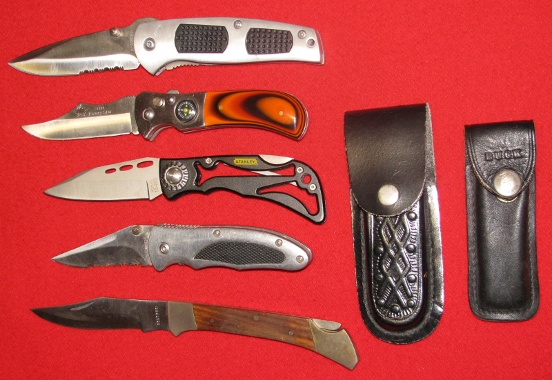 Zum Verkauf kommen 5 Taschenmesser und zwei Gürteltaschen