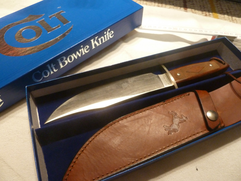 Zum Verkauf steht ein Colt Bowie-Knife, Klingenlänge 14,5cm, mit Lederscheide und Schachtel, neuwertig........... Kommissionsverkauf ohne Garantie. .......... Bei Versandadresse außerhalb Deutschlands vor dem Bieten die Mehrkosten erfragen .. ..........