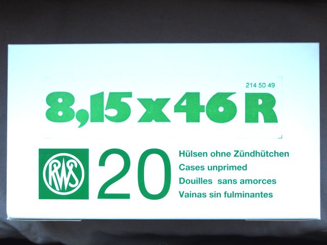 Biete eine Packung mit 20 Patronenhülsen für das Kaliber 8,15x46R von der Fa. RWS. Die Hülsen sind ungebraucht und neuwertig.