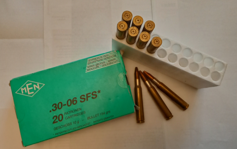 23 Patronen MEN .30-06,154grs SFS,7 abgeschossene Hülsen. Privatverkauf, daher keine Garantie oder Gewährleistung, what You see is what You get...