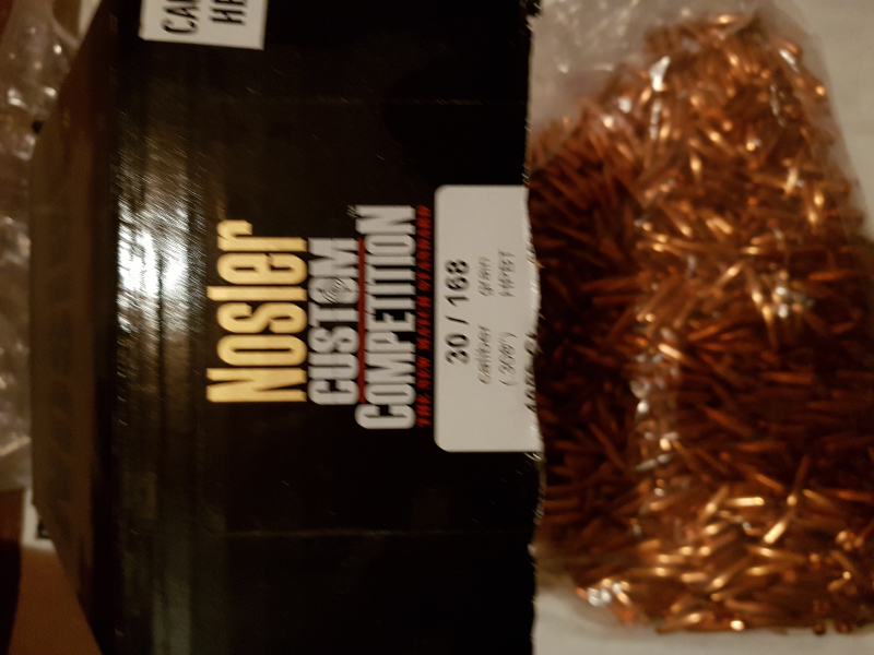 Geschoße Kal.308 HPBT , Gewicht 168gr , Nettogewicht ungefähr 9kg , Hersteller Nosler Custom Competition . Kein Sofortverkauf