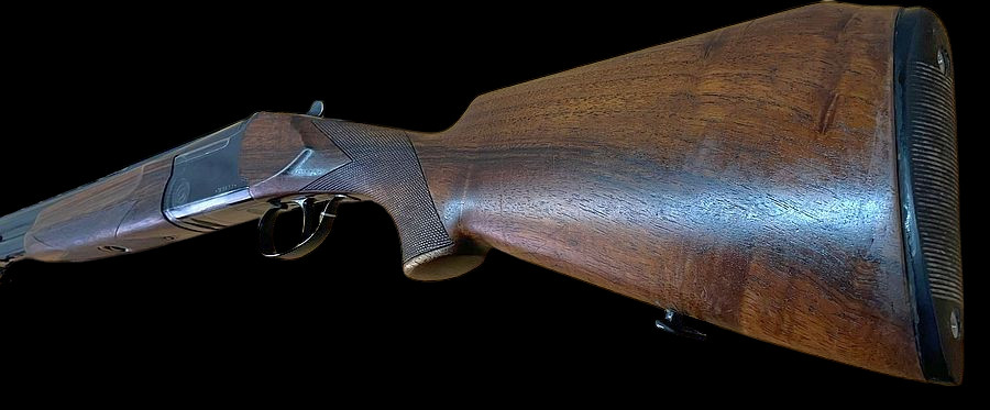 • Schaft: Nuss­holz mit Pistolengriff, Fischhaut, Schaftkappe aus schwarzem Kunststoff