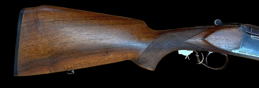 Gebrauchtwaffe. Der Schaft weist Gebrauchsspuren auf (siehe Bilder). Läufe innen in gutem Zustand.                                                      Metallteile außen teilweise fleckig und abgerieben,