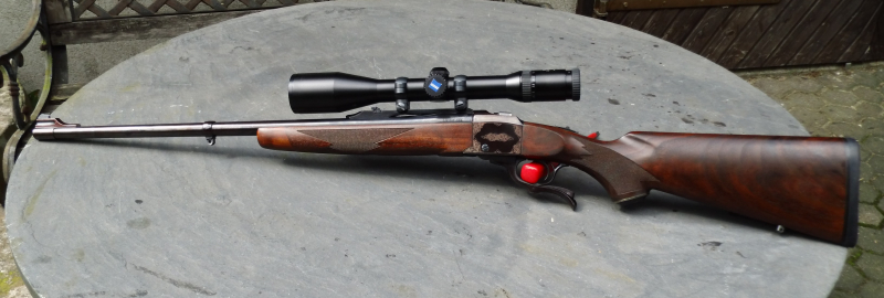 Ruger No. 1 Blockbüchse im Kaliber .338 Win.Mag. komplett mit Zeiss-Zielfernrohr 2,5 -10 x 48, Absehen 40 (Leuchtpunkt – digital, nachgerüstet).
