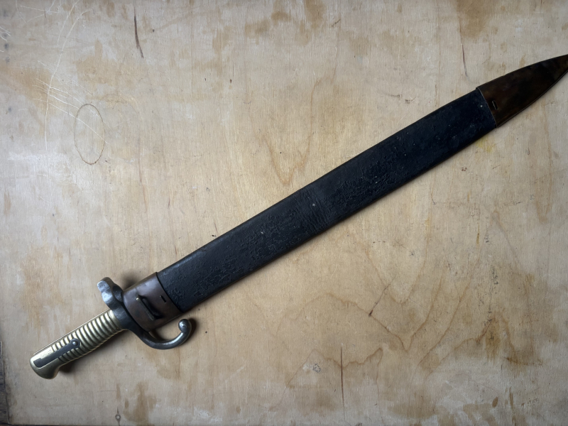 äuserst selten Chassepot Bajonett mit Klinbe der Seitenwaffe M1831 - beide Seiten des Klinge mit Inschriften gravirt