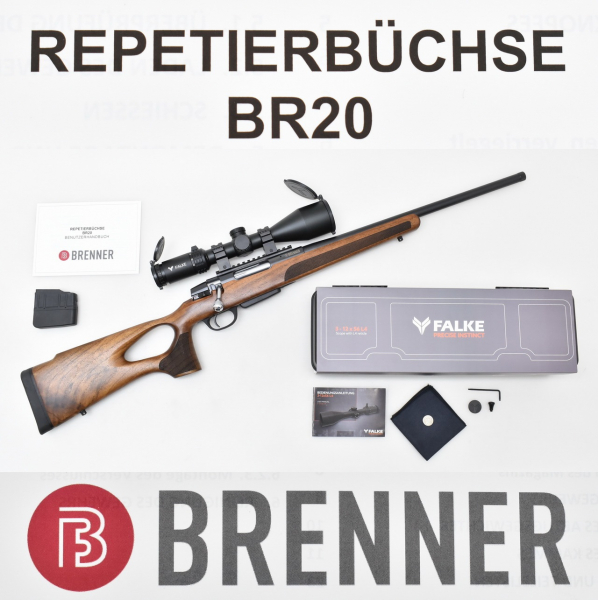 BRENNER BR20 Repetierer mit LOCHSCHAFT Kal .308 Win. mit FALKE oder AKAH ZF , Gewehrriemen & Koffer