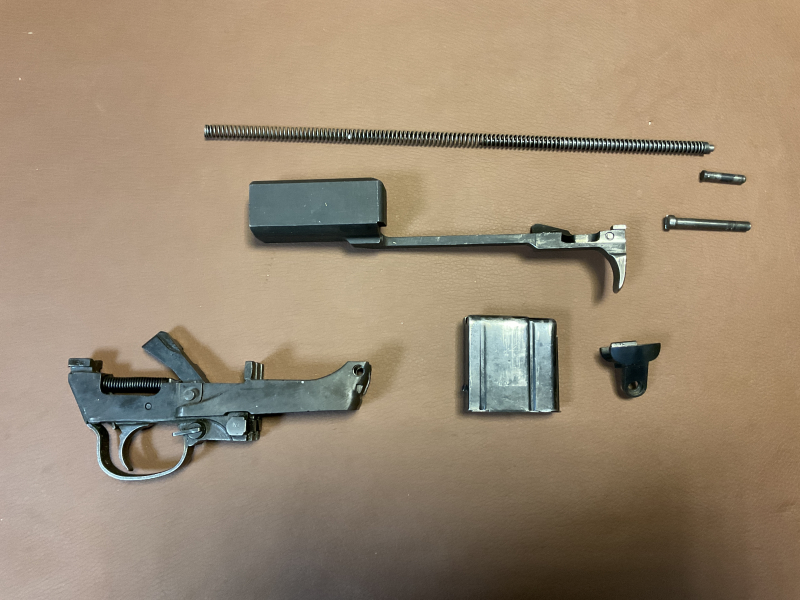 zum Verkauf steht ein gut erhaltener Ersatzteilesatz für ein M1Carbine Gewehr.