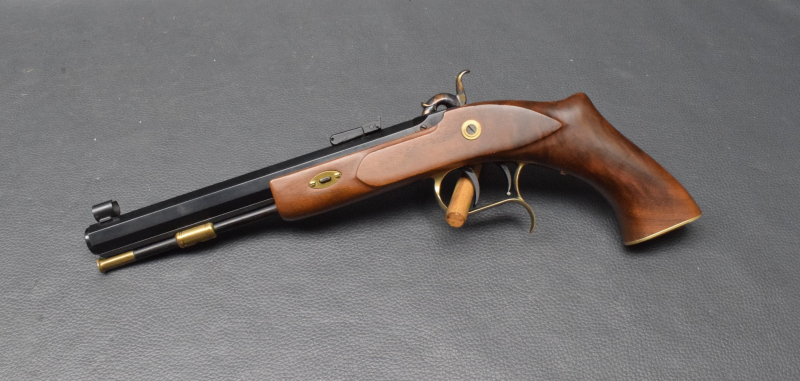 Hochwertig und sehr präzise gefertigte Vorderladerpistole mit buntgehärtetem Perkussionsschloss.