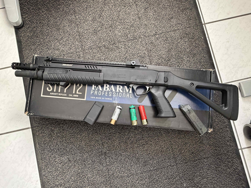 Bei dieser lizenzierten Shotgun handelt es sich um einen maßstabsgetreuen Airsoftnachbau der weltbekannten Fabarm STF12 Vorderschaftsrepetierflinte. Die von BO Manufacture vertriebene und von VFC hergestellte Airsoft-Shotgun ist mit einem Metallgehäuse versehen und präzise gefertigt. Wie bereits von den neuen Tokyo Marui Shotguns bekannt, kann auch hier der Schütze durch einen kleinen Hebel selbst wählen, ob 3 oder 6 Kugeln gleichzeitig verschossen werden. Auch der herausnehmbare Softairgas-Tank - im Griffstück- wurde von VFC berücksichtigt. Durch die vielen Metallteile stimmt auch der Sound beim Nachladevorgang und klingt sehr realistisch. Die Fabarm Airsoftreplika nutzt das gängigen 6mm BB Kaliber und besitzt eine Schussleistung von ca. 1 Joule. Im Original wird die taktische Shotgun weltweit von Militäreinheiten sowie Sportschützen gleichermaßen eingesetzt.