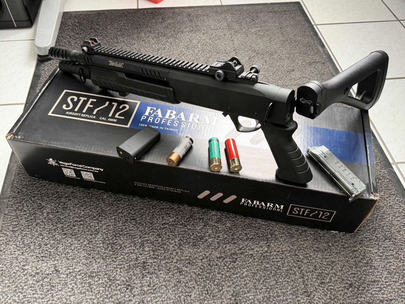 Die VFC / BO Manufacture Fabarm STF12 Pump Action Gas Shotgun kann mit den Original VFC Patronen sowie allen Original Tokyo Marui SPAS / M3 / M870 Pumpgun Patronen Shells betrieben werden.