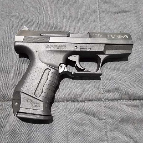 Servus, biete hier meine nicht mehr benötigte Schreckschusspistole Walther P99. Habe ich mir mal zugelegt als Böllerverbot war. Sie schiesst einwandfrei und ist auch eine echte Schönheit. Kaum nenneswerte Gebrauchsspuren, siehe Bilder. Brauche sie nun nicht mehr da ich lieber normales Feuerwerk mache. Eure Chanche - Sylvester steht bald vor der Türe!