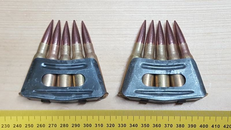Sammlermunition: 10 Dekopatronen 8mm Lebel auf 5er Ladestreifen. 2.WK.
