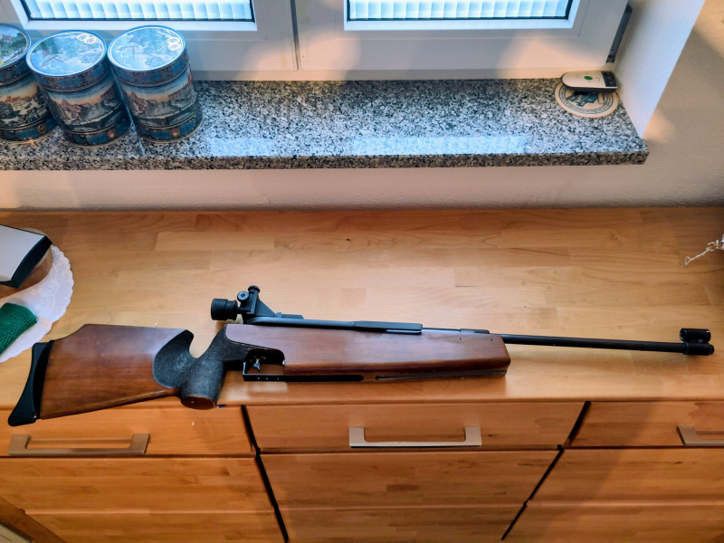Sie bieten auf eine schöne FWB 300. Die Waffe ist dicht, der Lauf spiegelblank und die V0 beträgt gemessen mit FX Radar 179 m/s mit Flachkopfdiabolo. Schaft ist in einen guten Zustand.