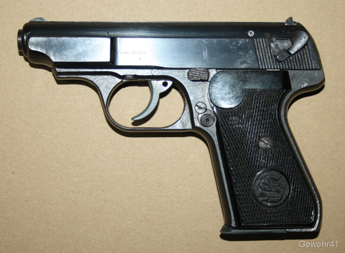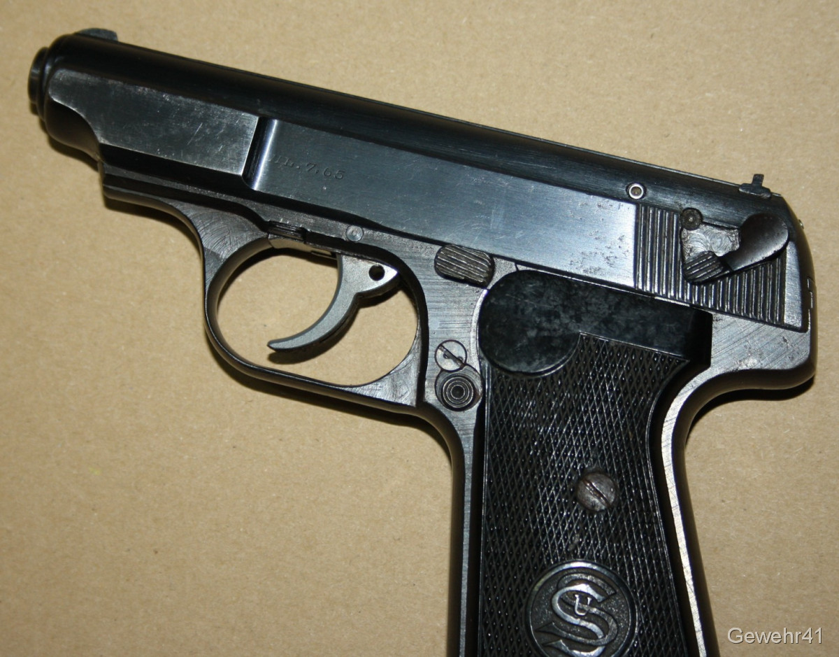 Sie bieten auf eine Pistole Sauer 38 im Kal. 7,65mm Br. Interessante Ausführung mit verstärktem Schlitten. So etwas hab ich noch nicht gesehen. Vielleicht weiß jemand mehr dazu... Lauf und Funktion einwandfrei. Hier ab fairen 1 EUR.