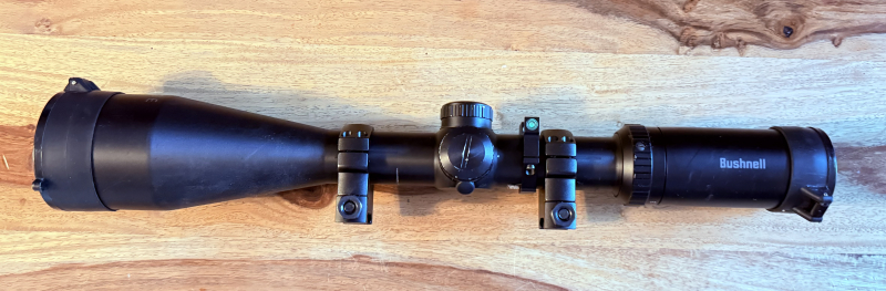 Zum Verkauf wegen Überbestand ein voll funktionsfähiges Glas von Bushnell. Leichte äußere Gebrauchsspuren von den Montageringen. Linsen sind klar und mit der 3-12 fachen Vergrößerung und dem sehr scharfen zuschaltbaren Leuchtpunkt der 4a Absehens machen es auch bis 300m voll einsatzfähig. Techn. Daten wie folgt: