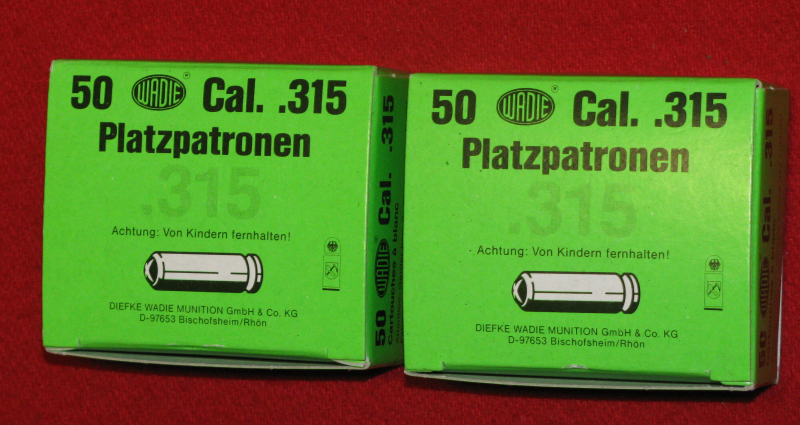 Zum Verkauf kommen zwei volle Packungen WADIE CAL. 315 Platzpatronen
