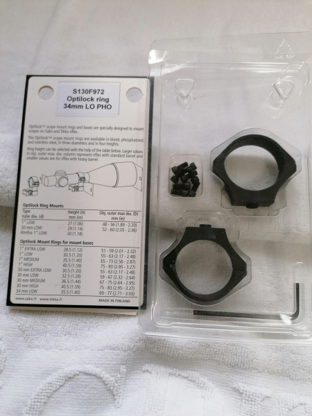 Tikka Sako Optilock-Ringe 34 mm Low für Zielfernrohre, neuwertig!!! Der neue Preis beträgt 109 Euro, also -50 %