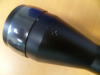 Eloxierung rundum gut mit wenigen Spuren, jedoch vorne oben ein paar kleine Macken in der Eloxierung (Detailbild).
