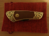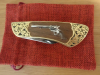 Versteigere hier ein Colt Sammlermesser. Es stammt aus der Franklin Mint Collection. Aktuell in Deutschland nicht mehr erhältlich. Es ist in einem absolut neuem neuwertigem Zustand. Keinerlei Abnutzungen, und oder Krazer. Klinge ist sehr scharf. Öffnet und schließt sich sehr sauber und absolut Wackelfrei, hat aber keine interne Klingenariettierung. Wurde nie aktiv benutzt. Die Verzierungen und der Rahmen sind Goldbeschichtet. Klingenlänge 7 cm, Grifflänge 10,5 cm. Gewicht 196 Gramm. Achtung und Hinweis hierzu. Dies ist eine Privatauktion. Deshalb hier keine Garantie, Gewährleistung, Rücknahme, Umtausch, Wandlung. Ich versende nur innerhalb Deutschlands, nicht EU weit, und auch nicht International. Das Colt Messer kann auch bei mir persönlich abgeholt werden nach Tel. Absprache, wenn es ein Geschenk werden sollte.