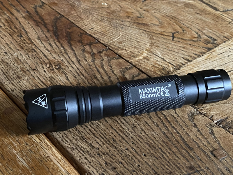 Infrarotstrahler 850Nm von Maximtac. Dieser Strahler kann in 3 Stufen eingestellt werden und hat eine Leistung von 5 Watt. Der Lampenkopf kann zur Fokussierung des Lichtstrahls verschoben werden. Bei Sofortkauf entfallen die Versandkosten und ich lege noch einen Samsung Akku 18650 dazu. Garantie und Rücknahme ausgeschlossen.