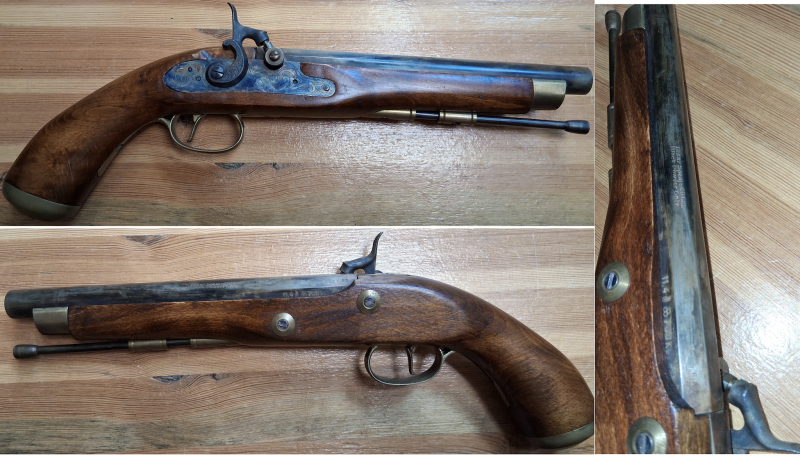 Vorderlader Pistole DIKAR im Kal. 45 Cal. Perkussion. DIE BRÜNIERUNG AUF DEM LAUF IST GEWOLLT UND KÜNSTLICH AUF ALT GEMACHT!!! Achtkantlauf welcher zum Rundlauf wird! Portoangabe gilt nur für Deutschland! - Anderes bitte erfragen. Altersnachweis erforderlich! Ab 18.